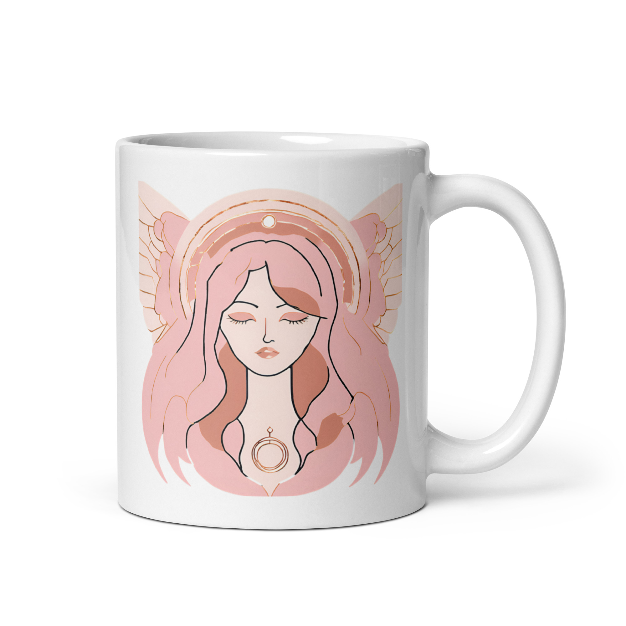 Start your day with a sip of serenity and strength from this White Glossy Mug, adorned with the gentle yet empowering energy of Archangel Ariel. Perfect for your morning rituals, meditation moments, or cozy evenings, this mug brings divine inspiration to every cup.